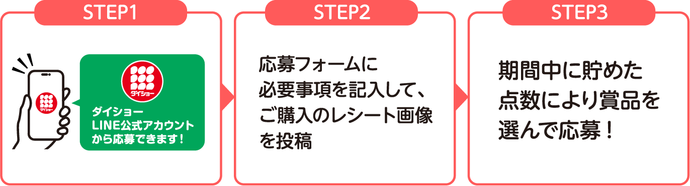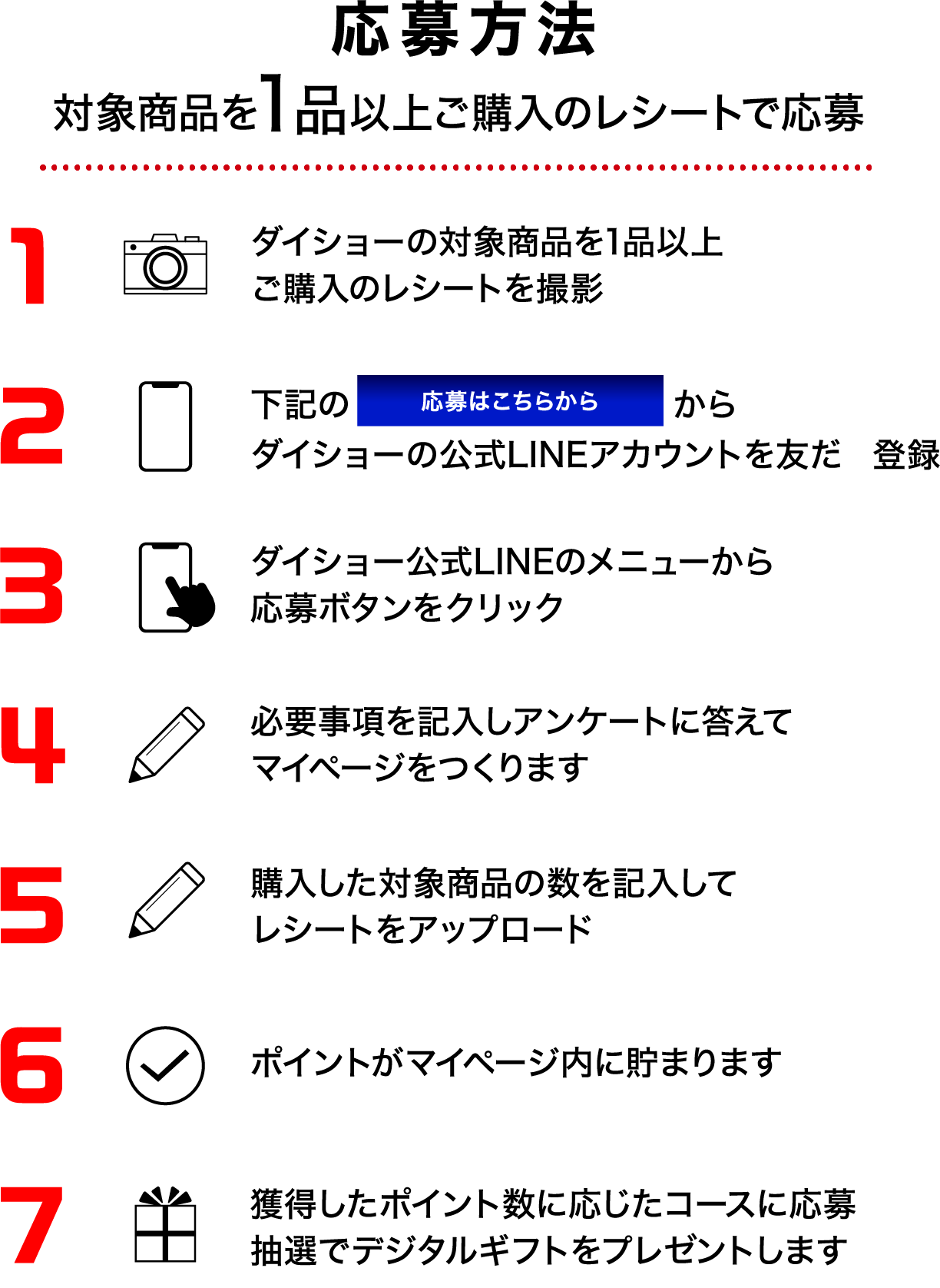 - 「応募はこちらから」よりダイショーLINE公式アカウントを友だち登録してください。