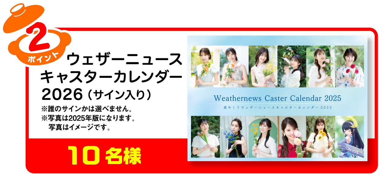 ・2ポイントコース ウェザーニュースキャスターカレンダー 10名様