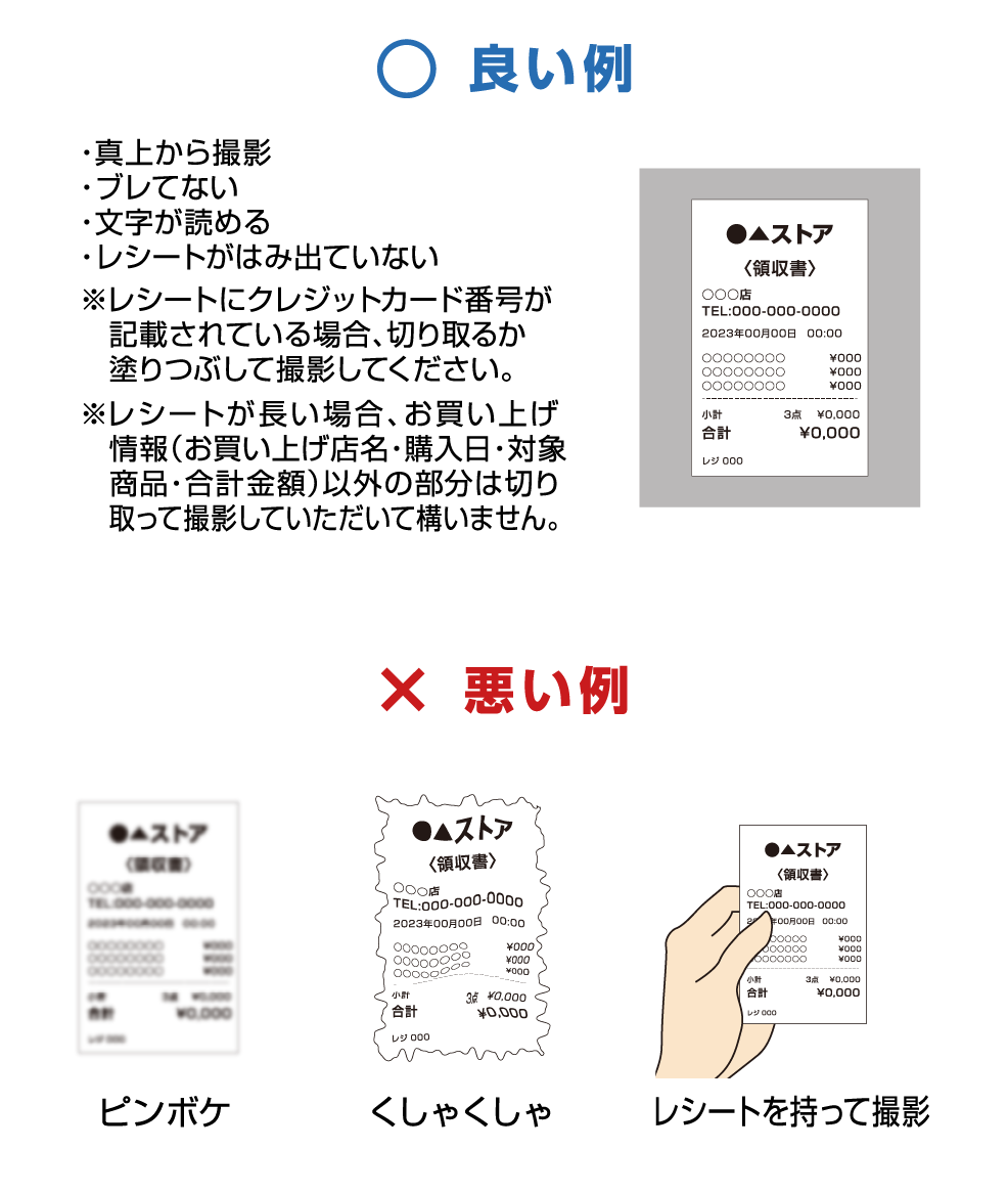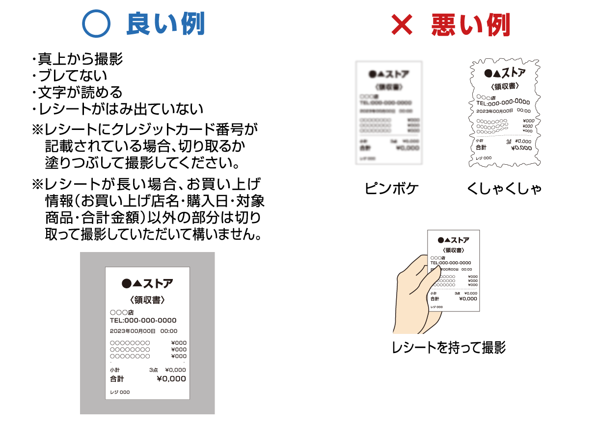 必ずレシートの真上から撮影してください。